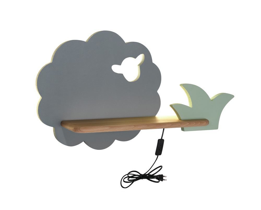 Charmante applique murale étagère LED en forme de mouton dans un coloris gris et vert, de la collection IQ Kids de . Ce luminaire décoratif apporte une touche de douceur et de fantaisie à la chambre de votre enfant.