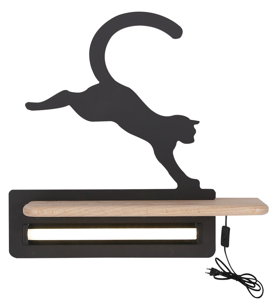 Applique Murale LED Étagère Chat Noir – Luminaire Décoratif pour Chambre d’Enfant