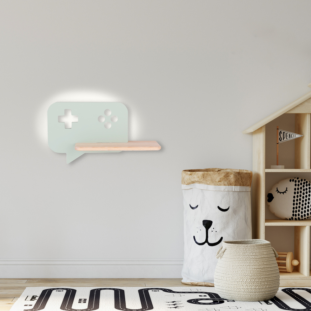 Cette applique murale moderne en forme de console de jeu avec étagère intégrée et rétroéclairage LED est un produit idéal à installer dans une chambre d’enfant ou de garçon. L’utilisation de sources lumineuses LED garantit une efficacité énergétique optimale tout en offrant un éclairage doux et agréable.