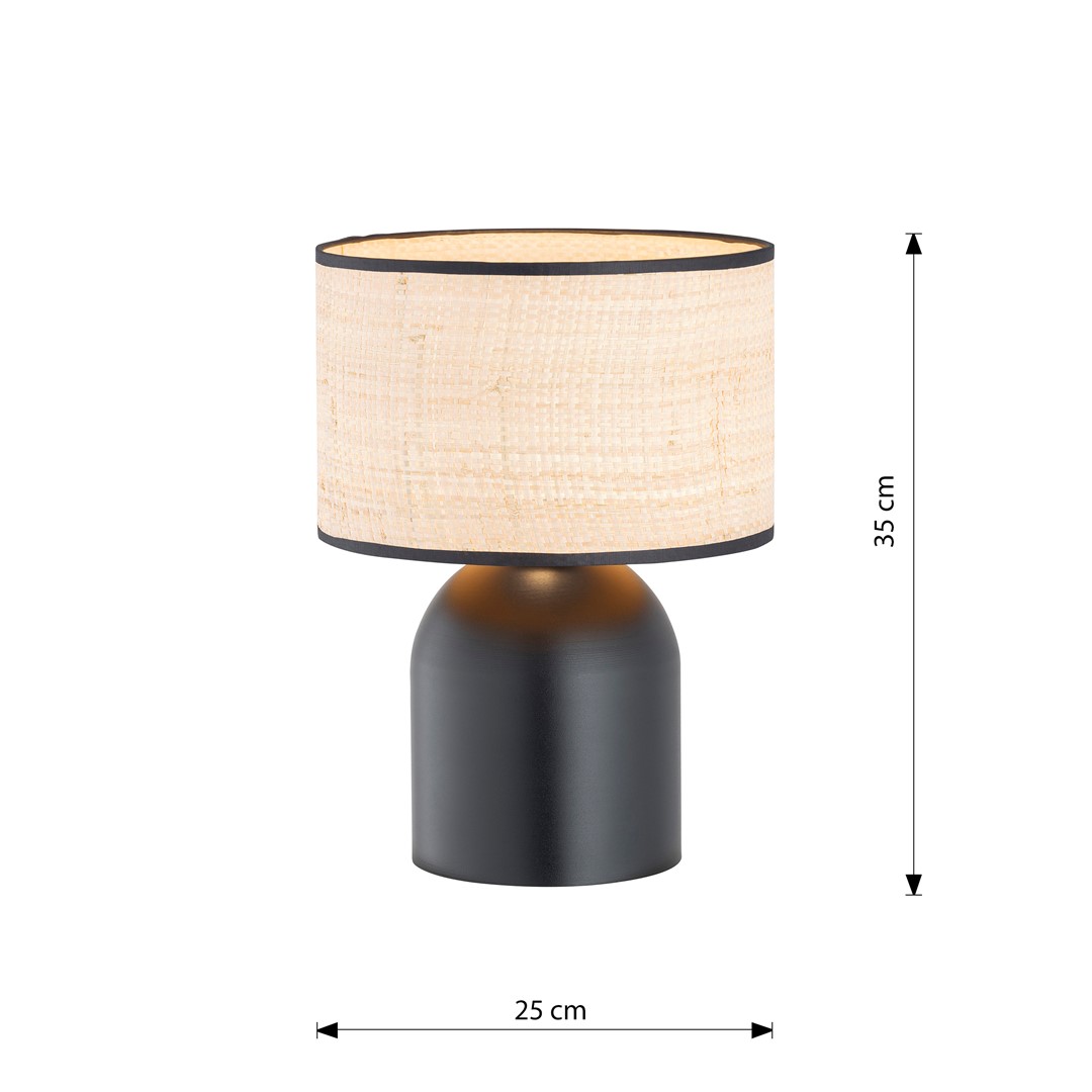 Lampe à poser Aspen en acier et rotin noir cylindrique