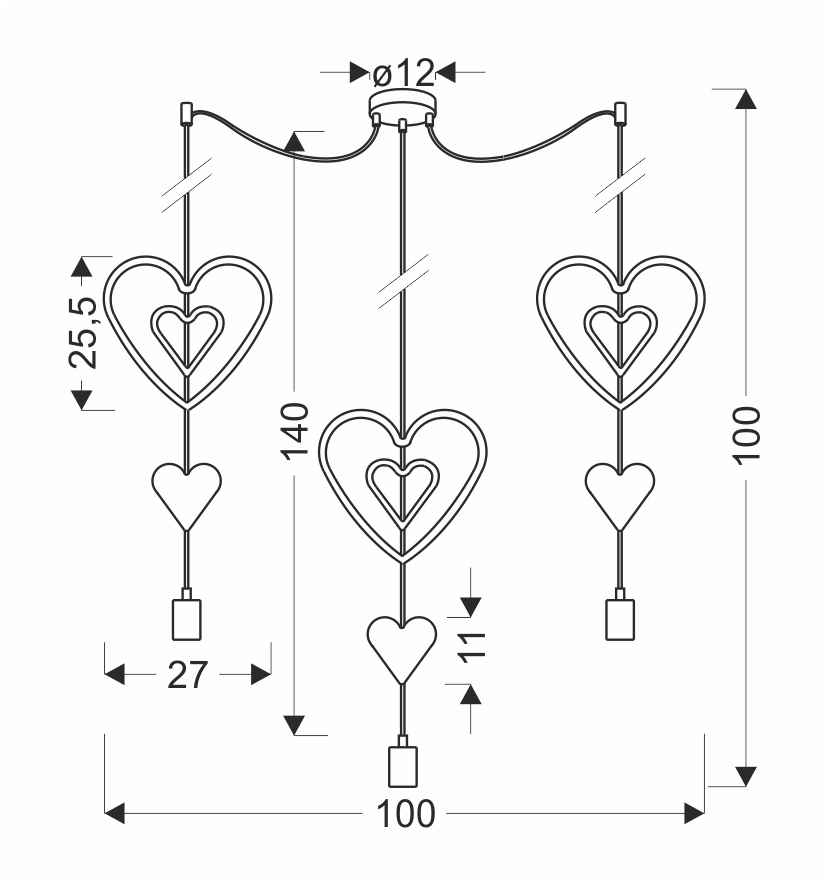 Équipée de trois douilles E27 standard (ampoules non incluses) avec une puissance maximale de 20W, cette suspension vous permet de personnaliser l’éclairage. La température de couleur dépend des ampoules choisies.